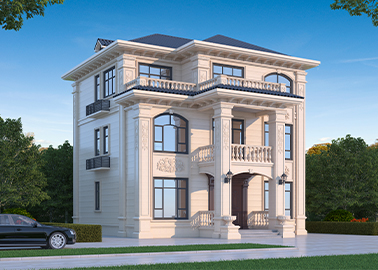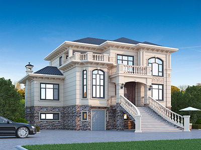 農村二層簡歐別墅外觀效果圖 帶車庫